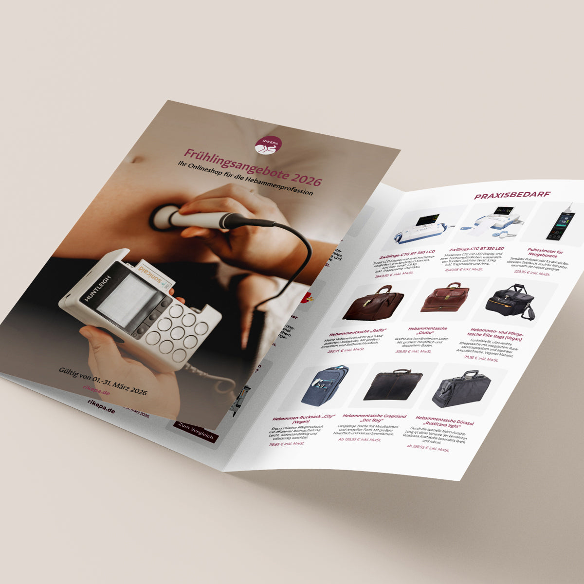 Lehrmaterial, Praxisbedarf und Taschen für Hebammen