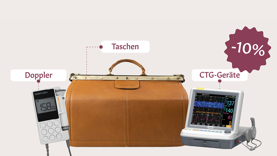Lehrmaterial, Praxisbedarf und Taschen für Hebammen